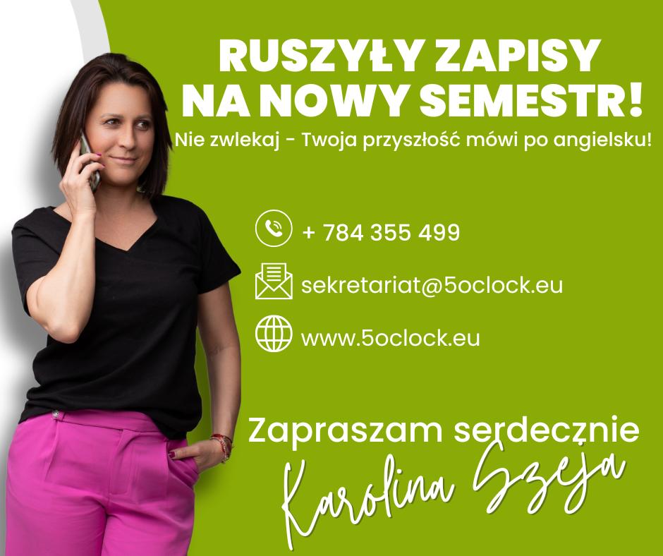 Jeśli interesuje Cię nauka angielskiego, to w Centrum Językowym 5o'clock znajdziesz kurs stworzony specjalnie dla Ciebie. W naszej szkole nie ma limitów wiekowych, ponieważ uważamy, że na naukę nigdy nie jest za późno.